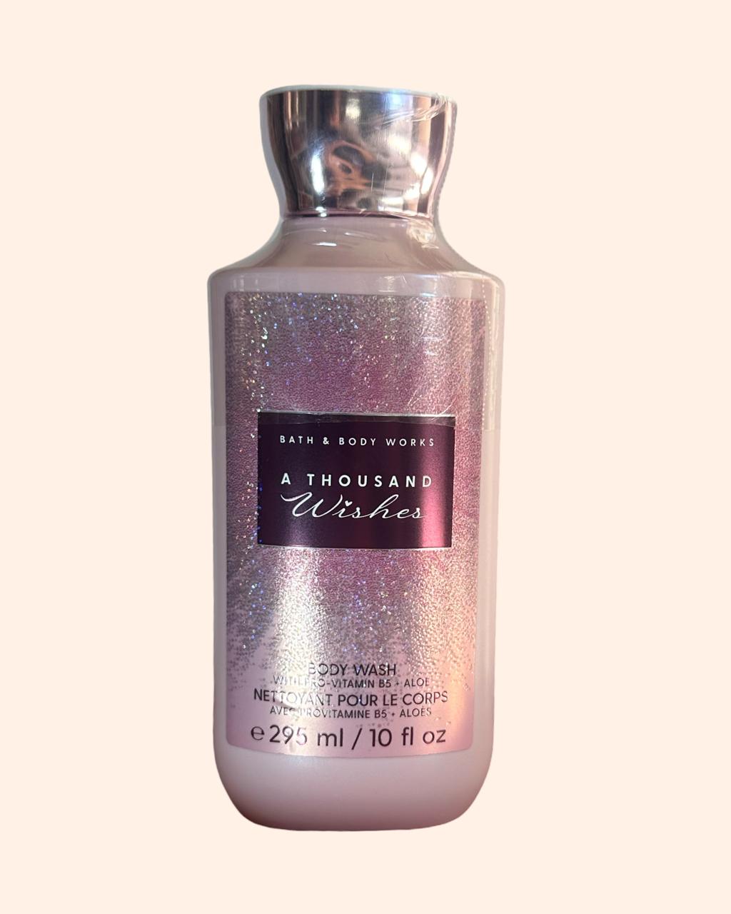 O Sabonete Líquido A Thousand Wishes limpa suavemente a pele enquanto envolve o corpo em uma fragrância elegante e luminosa. Sua espuma macia remove as impurezas sem ressecar, deixando a pele confortável, limpa e delicadamente perfumada.